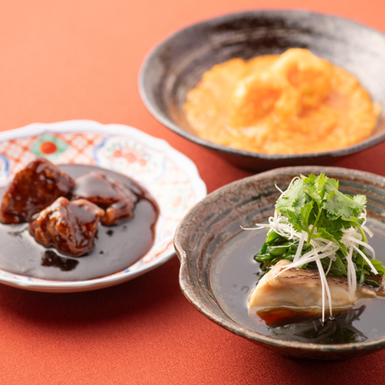 季節の食材を中心に、内容を一段引き上げたコースです。記念日や特別な日のお食事におすすめいたします。 前菜 フカヒレ姿煮 海鮮料理 肉料理 御飯物 デザート等 全7〜8品